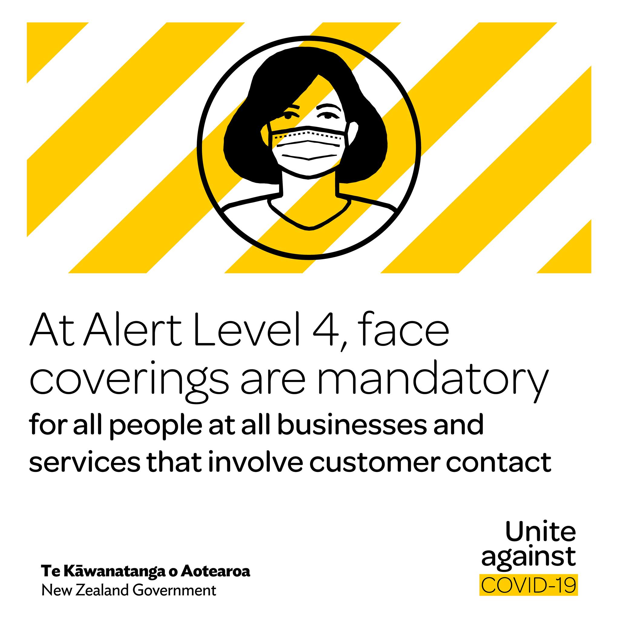 | Unite Against Covid 19 On Twitter The Government Has Announced That At Alert Level 4 Face Coverings Now Must Be Worn By All People Employees And Customers At Businesses And Services That Involve |